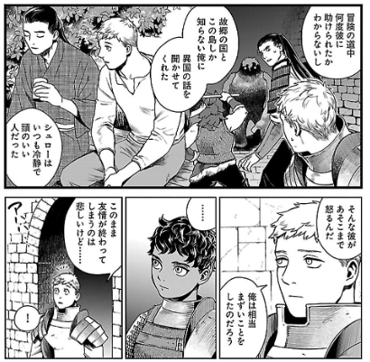 最終巻で悪魔を倒した後に、ライオスは皆から賞賛されて王になります。その時の食事をとる流れが、過去のライオスが欲しかった、友情そのものなのです。